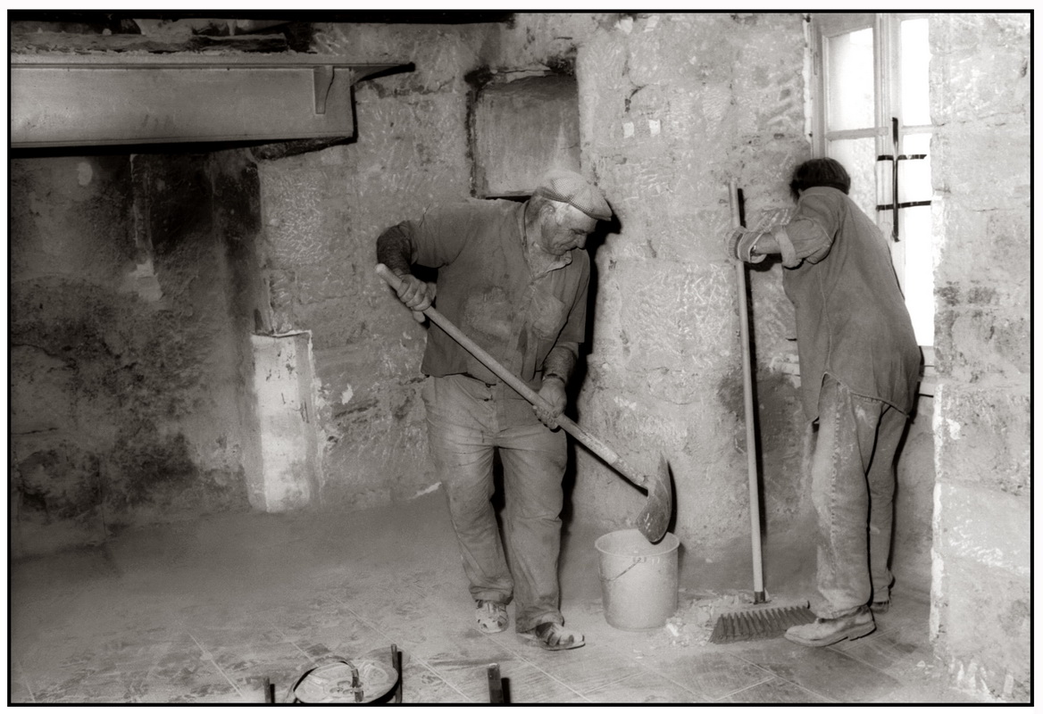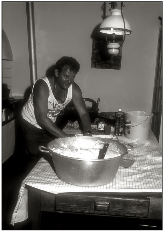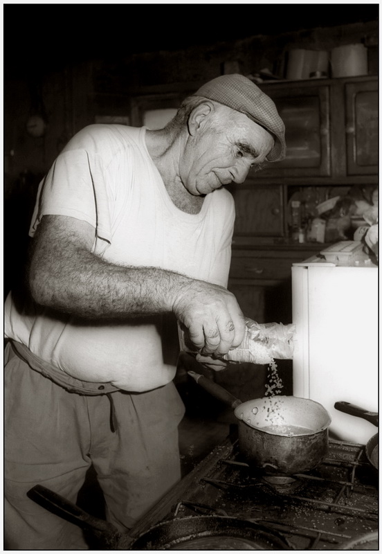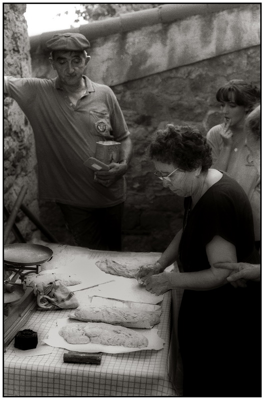 Mémé Roques fabrique du pain sous le regard de René