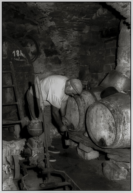 Albert à la cave, il tire du vin