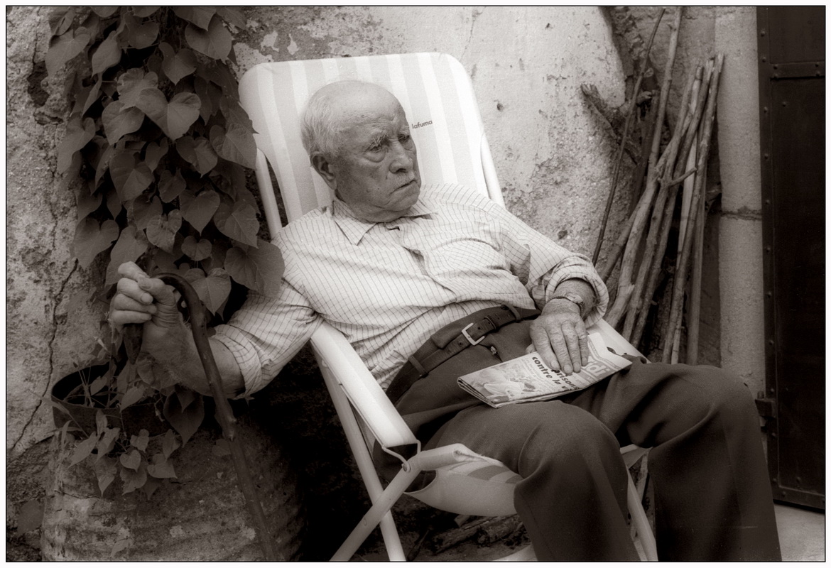 Papet dans son fauteuil sur la terrasse