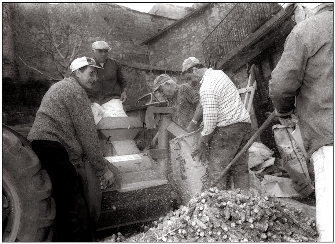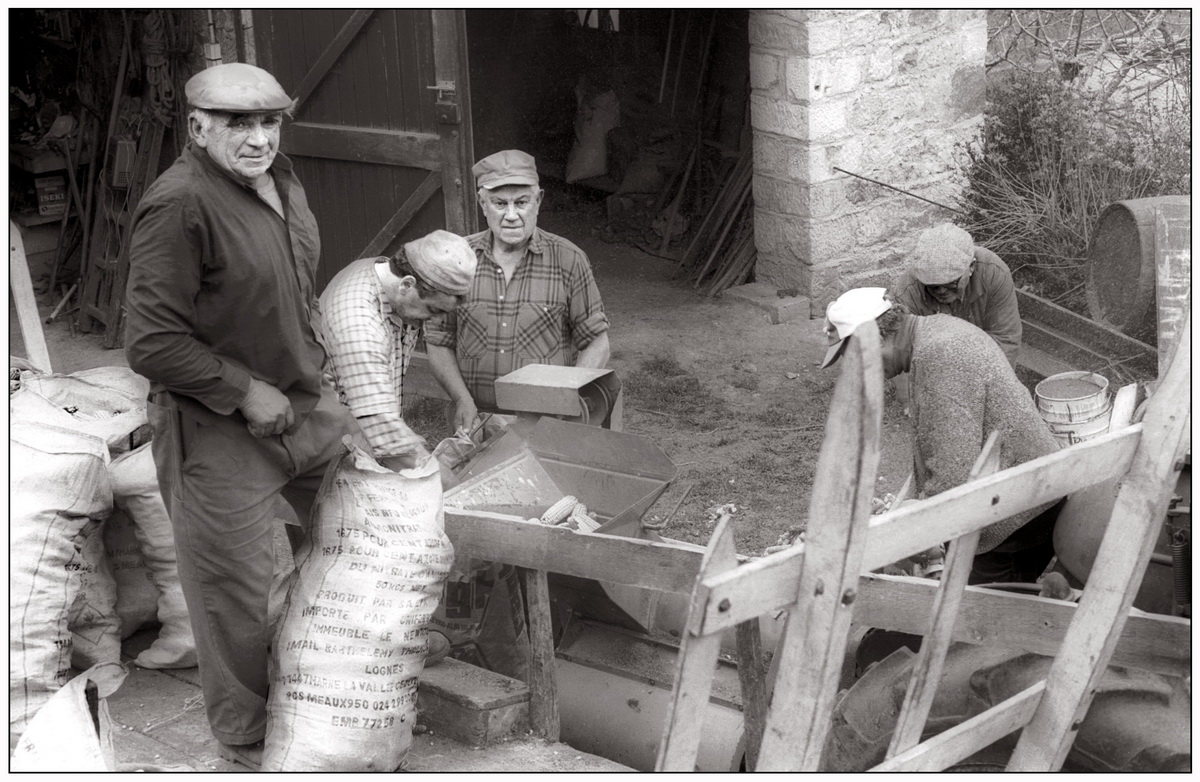 Egrenage du maïs, Jojo, Albert, Pierrot, Jean-Paul et Mr Neyral
