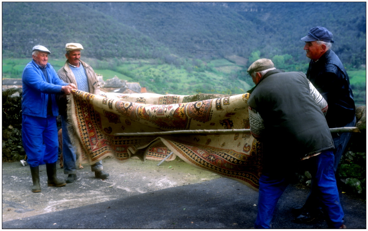 Albert et René battent les tapis