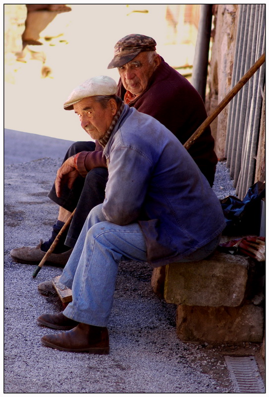 Félix et Albert sur le banc de pierre